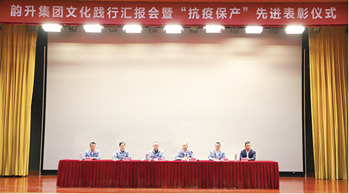 剛過去的10月是令人難忘的,面對(duì)突如其來的疫情,韻升人勠力同心、堅(jiān)守奮戰(zhàn),打贏了一場(chǎng)艱苦的“戰(zhàn)役”。11月15日下午,集團(tuán)文化踐行匯報(bào)會(huì)暨“抗疫保產(chǎn)”先進(jìn)表彰儀式在韻升三園報(bào)告廳隆重舉行。集團(tuán)董事局相關(guān)領(lǐng)導(dǎo)、各部門各下屬單位負(fù)責(zé)人、抗疫保產(chǎn)先進(jìn)員工及集體代表共計(jì)百余人出席?,F(xiàn)場(chǎng)掌聲雷動(dòng),氛圍熱烈。