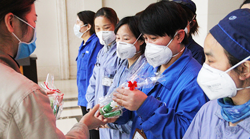 3月6日,由公司工會、婦聯(lián)組織的“三八”節(jié)慰問活動走進韻升四園材料制造部,向50余名一線女工代表送上節(jié)日禮物和祝福。今年2月4日,為了支援疫區(qū)所需呼吸機的生產(chǎn)配套項目,包括這些女工在內(nèi)的百余名員工響應號召、提前返崗,為疫區(qū)趕制磁鋼。